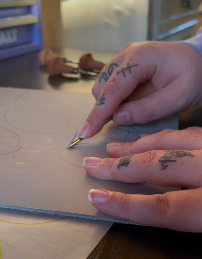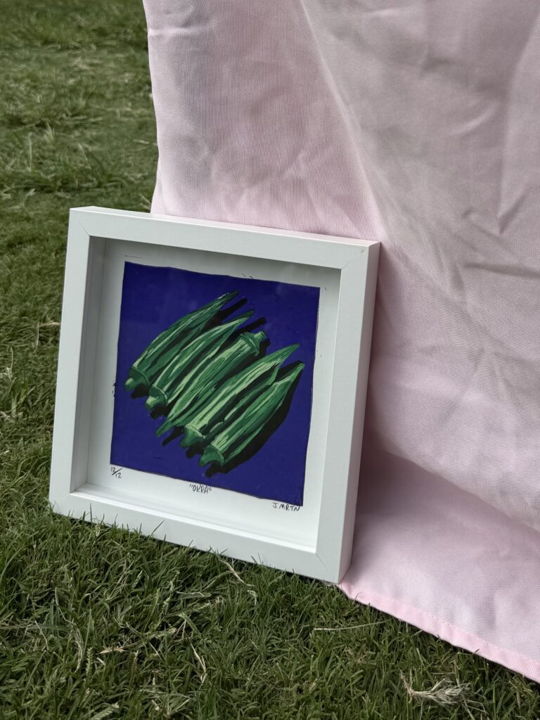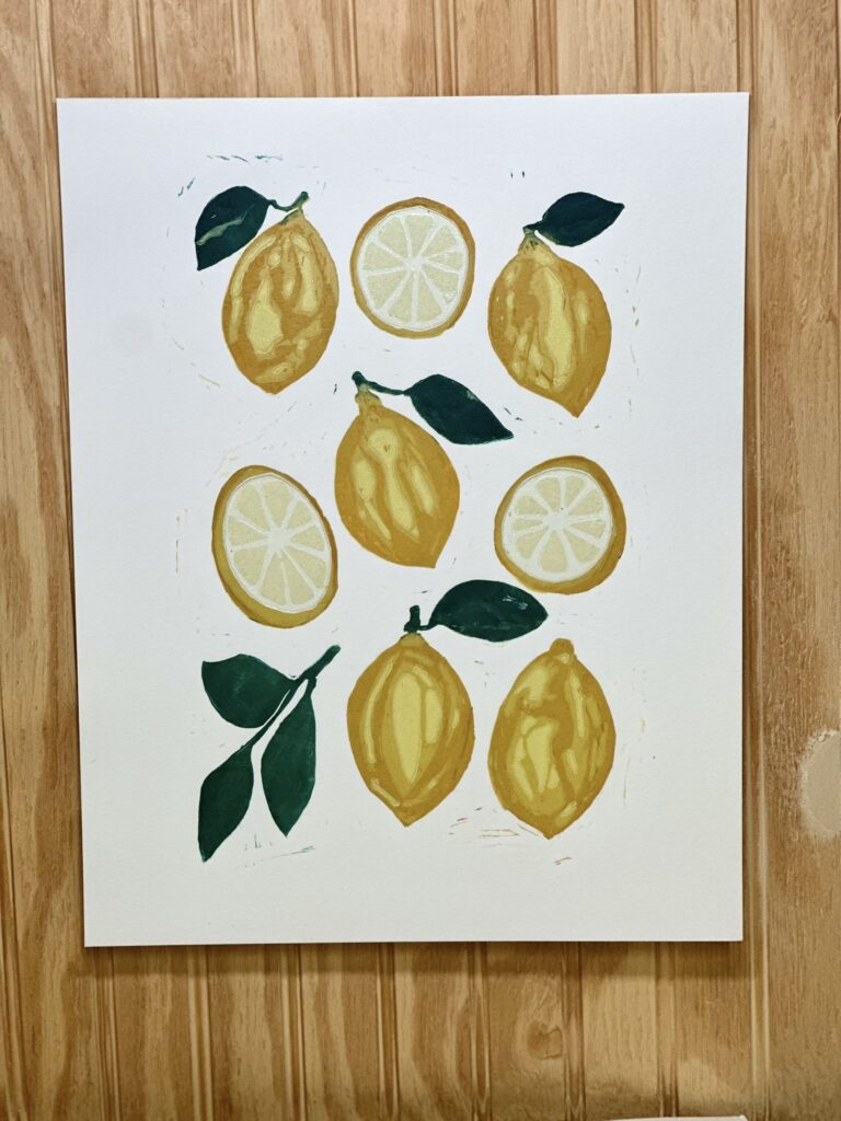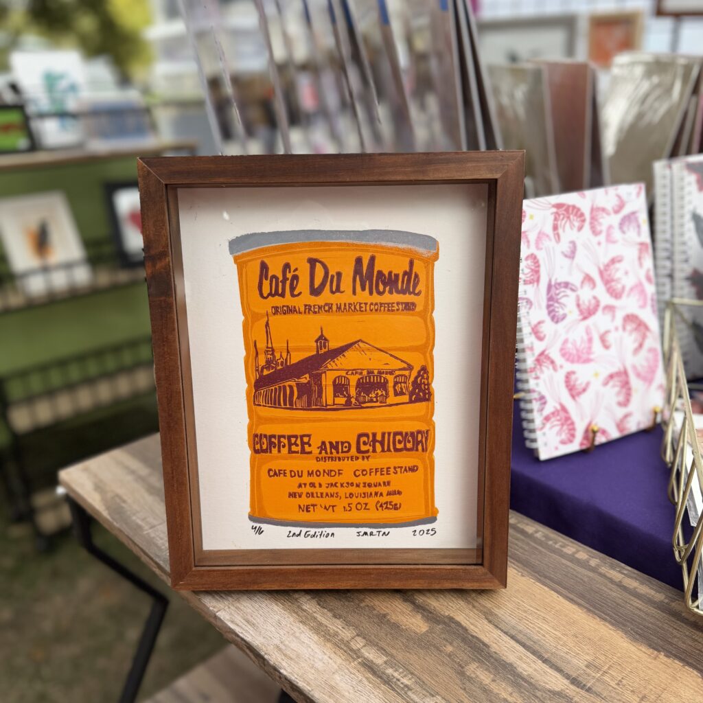 Each print in this collection is the result of slow, thoughtful process work—carved by hand, layered with intention, and printed in small batches using a cold press laminator. I draw inspiration from the textures of Southern food, the rhythm of everyday life, and the storytelling traditions I grew up with in Louisiana and now carry forward in Laurel, Mississippi.