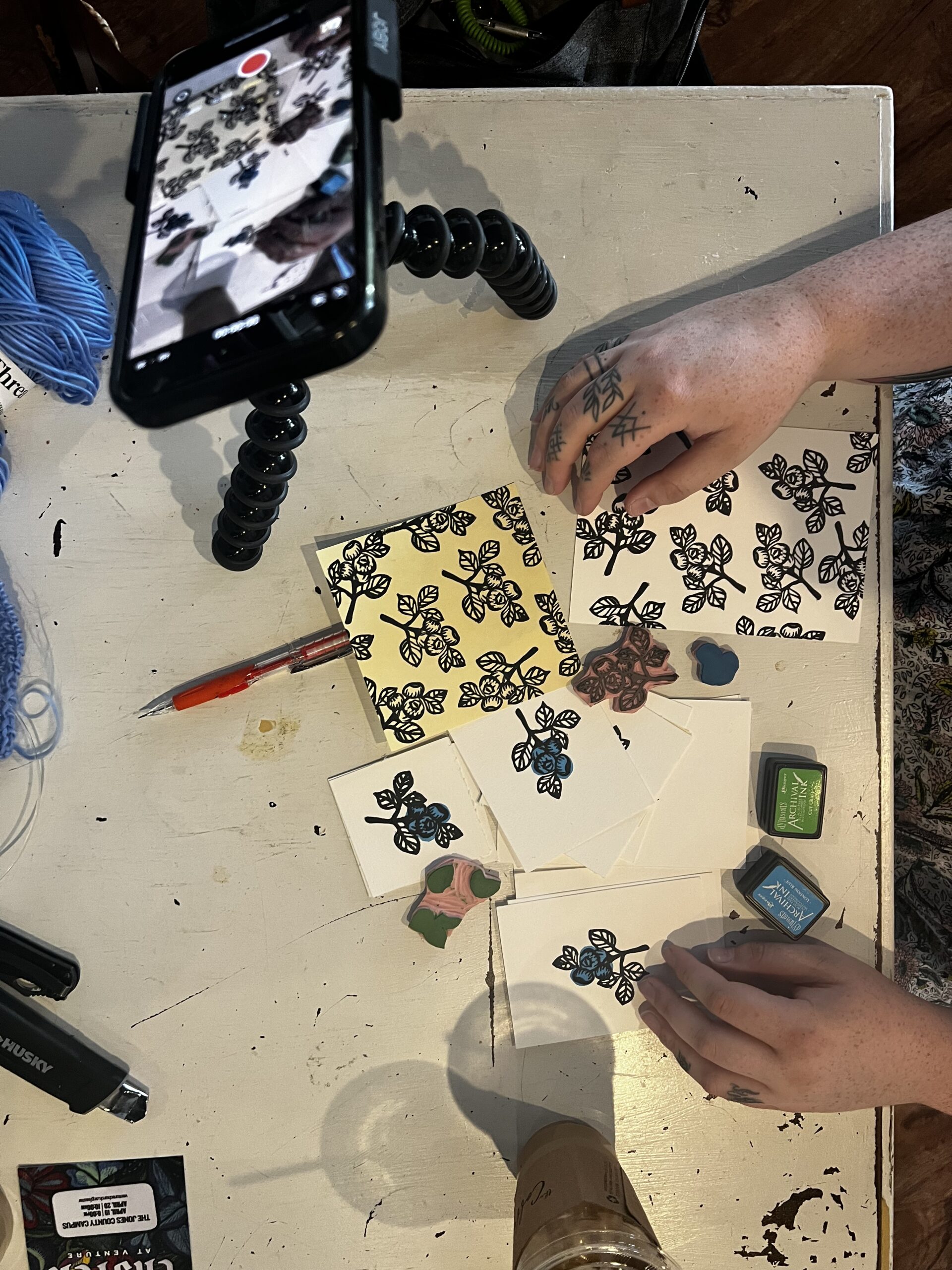 The iconic, delicious hand-carved blueberry block print.