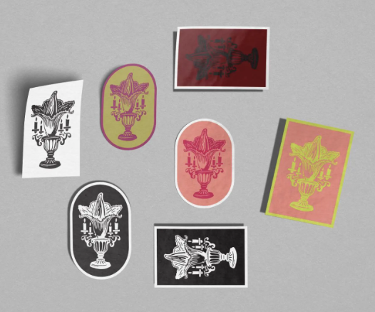 Corpse Flower Candelabra sticker using my own block print artwork.