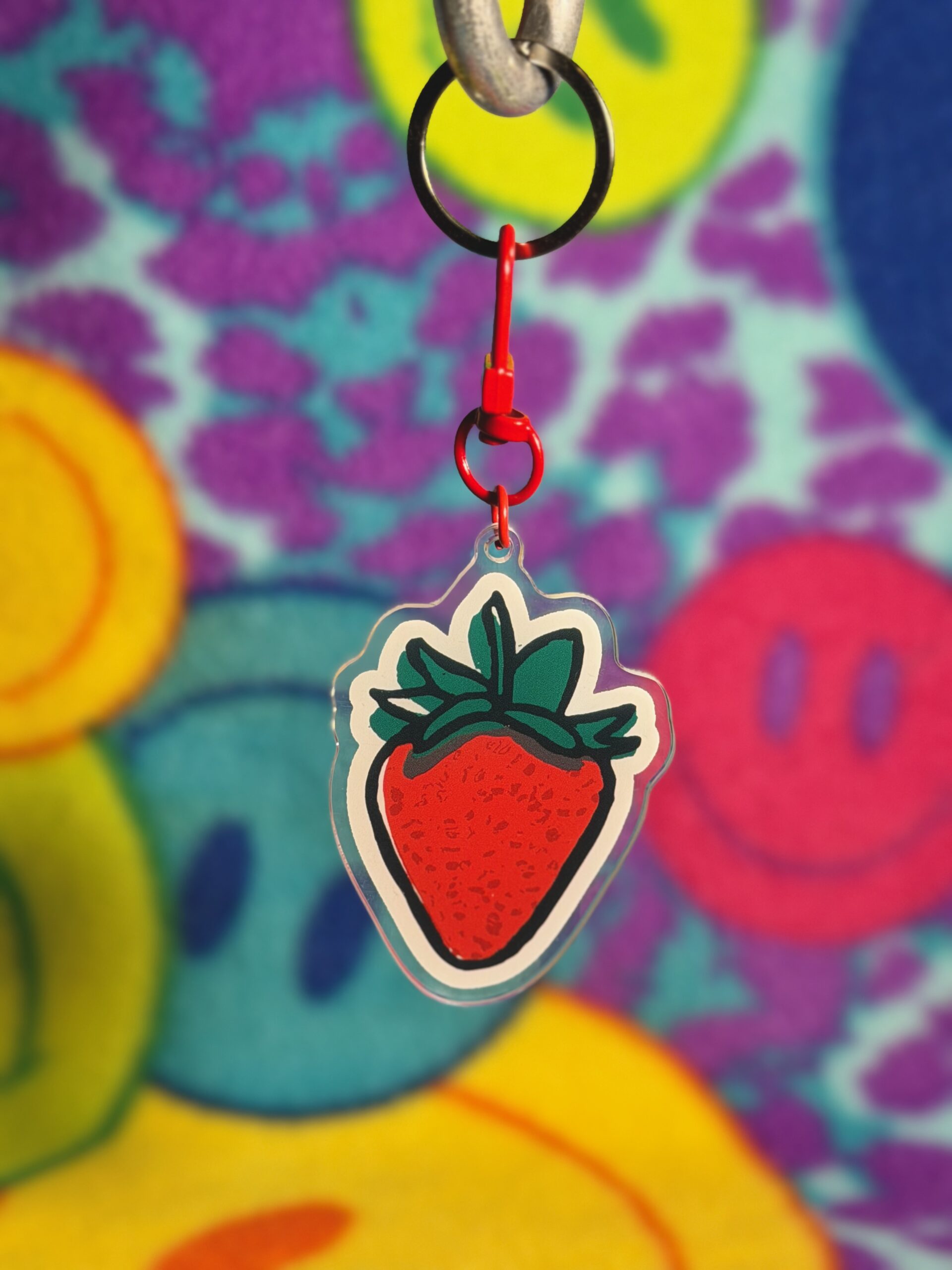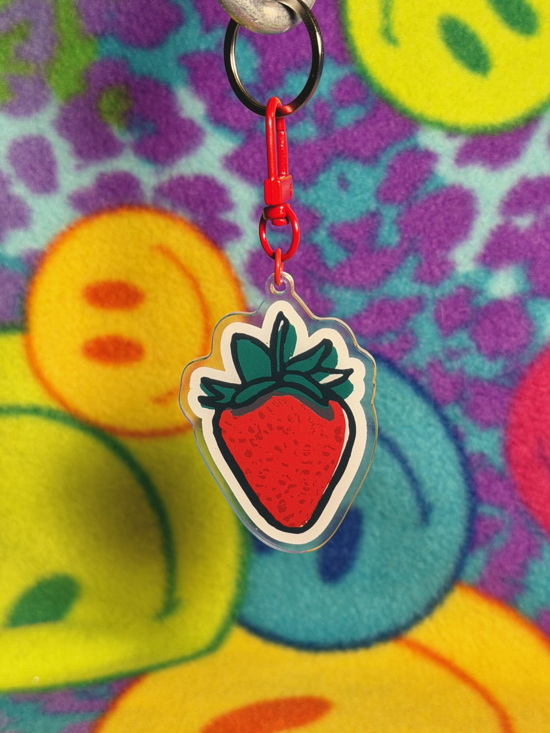 Strawberry Keychain, with my original Strawberry block print hand carved in Laurel, Mississippi